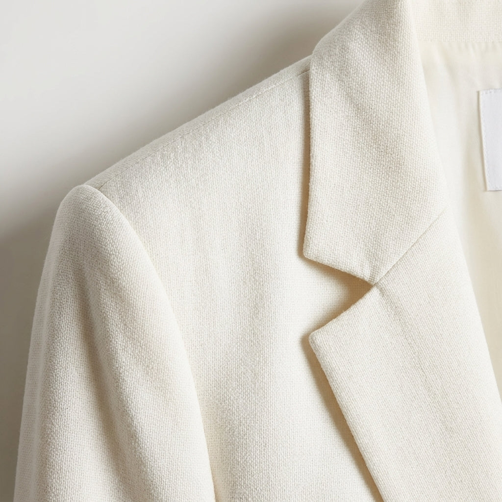 - Solapas de Muesca: Solapas clásicas de muesca enmarcan el escote con autoridad y estructura, aportando ese aire profesional atemporal que define el poder del buen vestir.