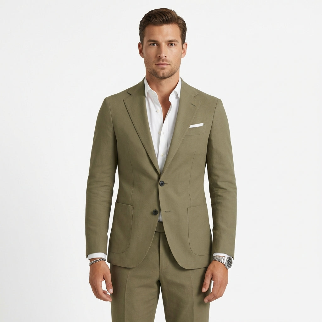 Destaca con un traje dos piezas que equilibra elegancia formal y frescura contemporánea en cada detalle. Su solapa clásica aporta sofisticación atemporal, mientras que los botones en contraste añaden un toque moderno que te diferencia sin esfuerzo. El corte entallado estiliza tu silueta manteniendo la comodidad para moverte con naturalidad durante todo el día. Perfecto para eventos de día, reuniones de negocios informales o celebraciones donde quieras proyectar estilo relajado pero impecable.