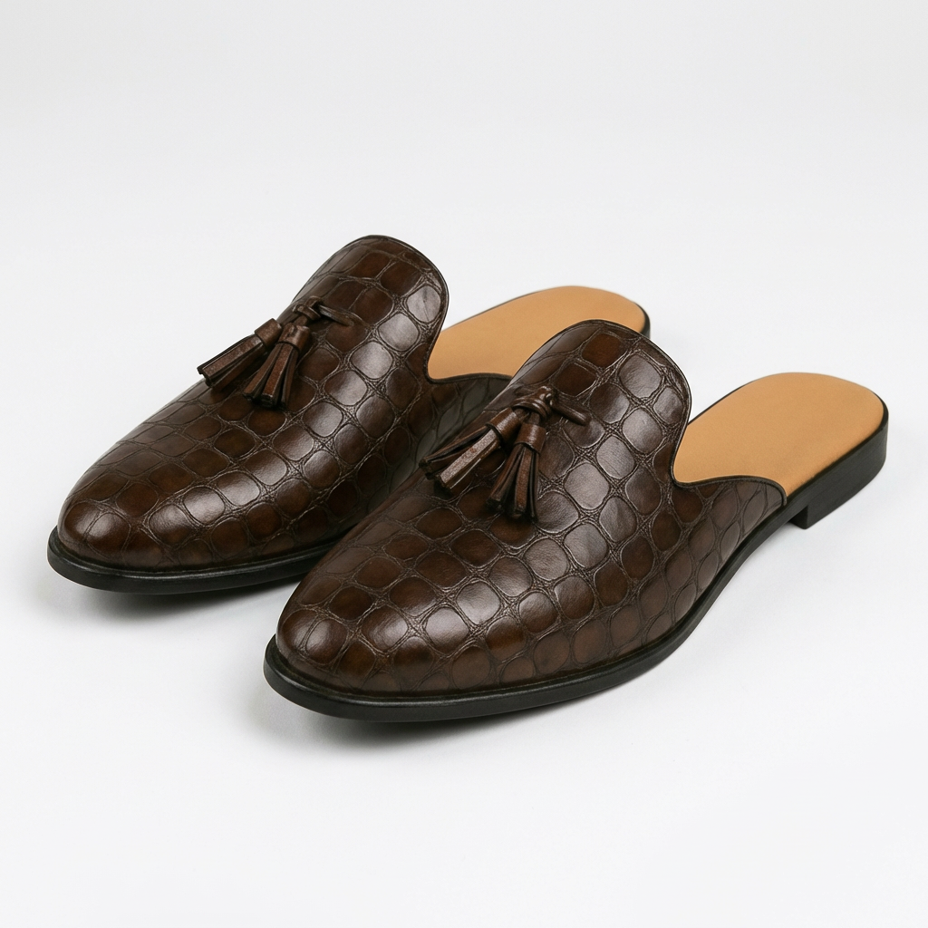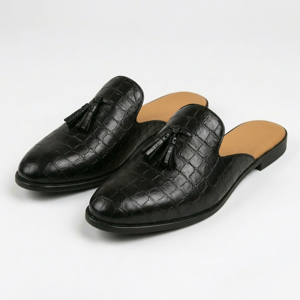 Diego | Mocasines Mule Hombre Con Borlas Decorativas Y Textura Grabada | Elegante