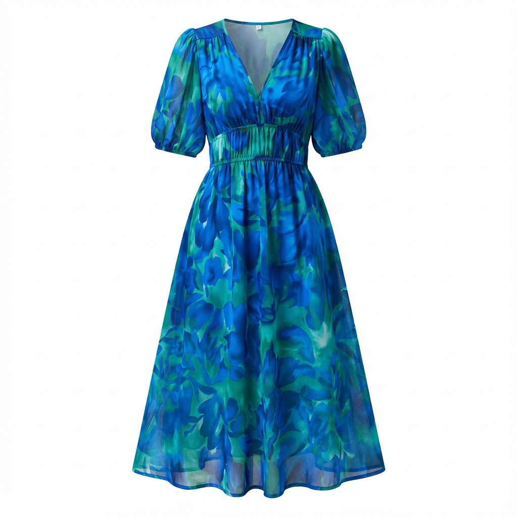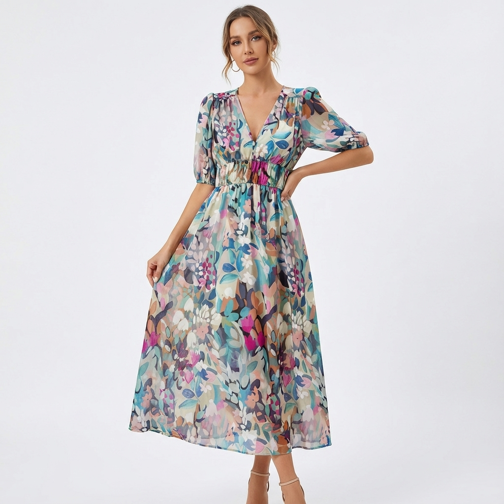 Emily | Vestido Midi de Mujer con Cuello en V y Estampado Floral