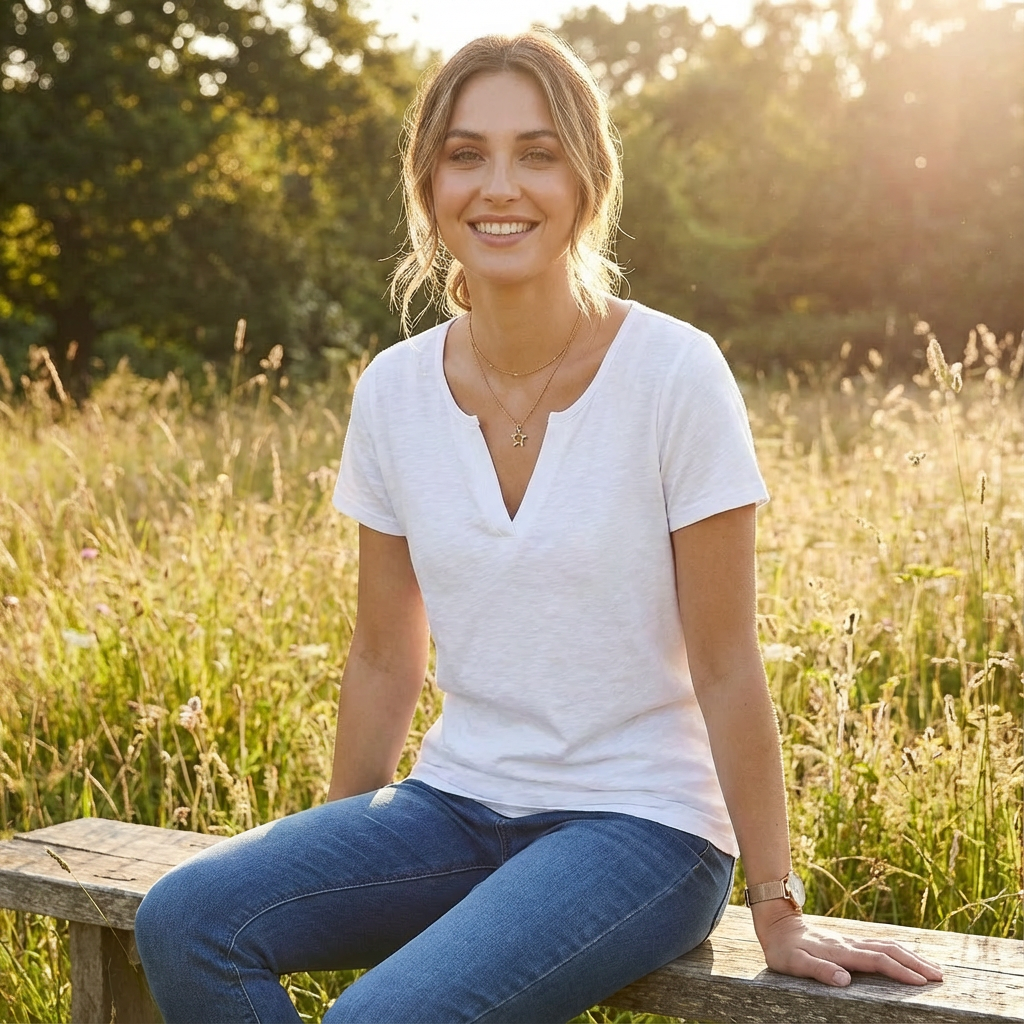 Sofia | Camiseta Mujer Blanco Con Escote De Pico Y Manga Corta | Casual