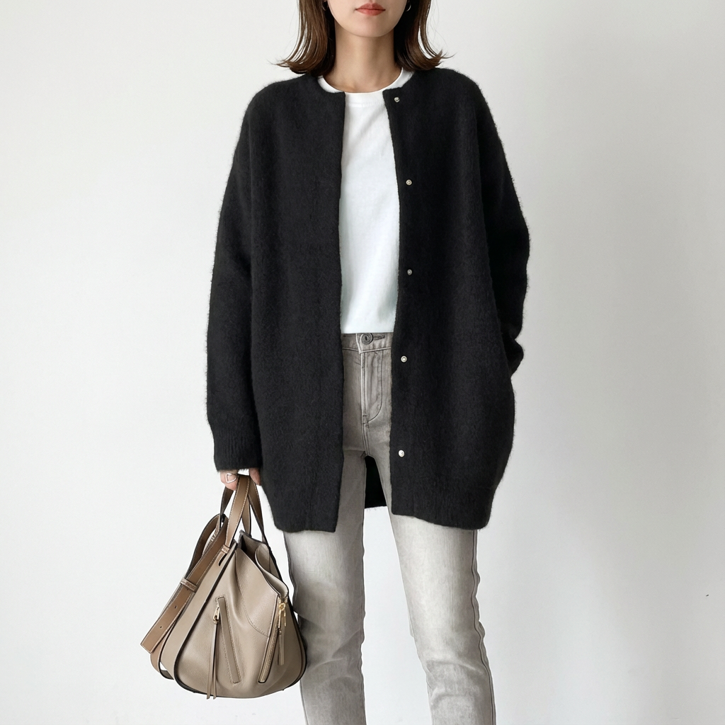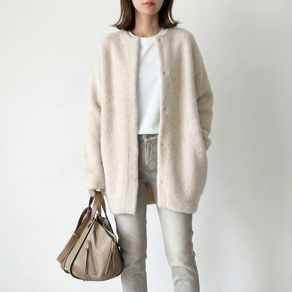 Angela | Cárdigan de Mujer sin Cuello con Botones