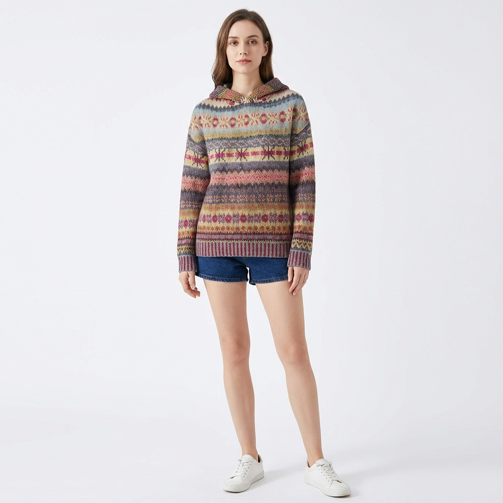 Experimenta una combinación de estilo y comodidad con esta Sudadera con Capucha de Manga Larga para Mujer. Diseñada con un corte relajado y una capucha acogedora, es perfecta para descansar en casa o salir con amigos. El patrón Fair Isle añade un toque único, convirtiéndola en una prenda destacada en tu armario.