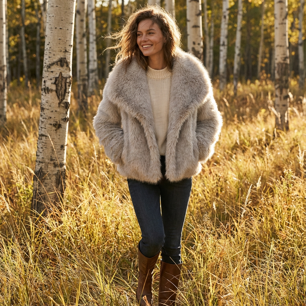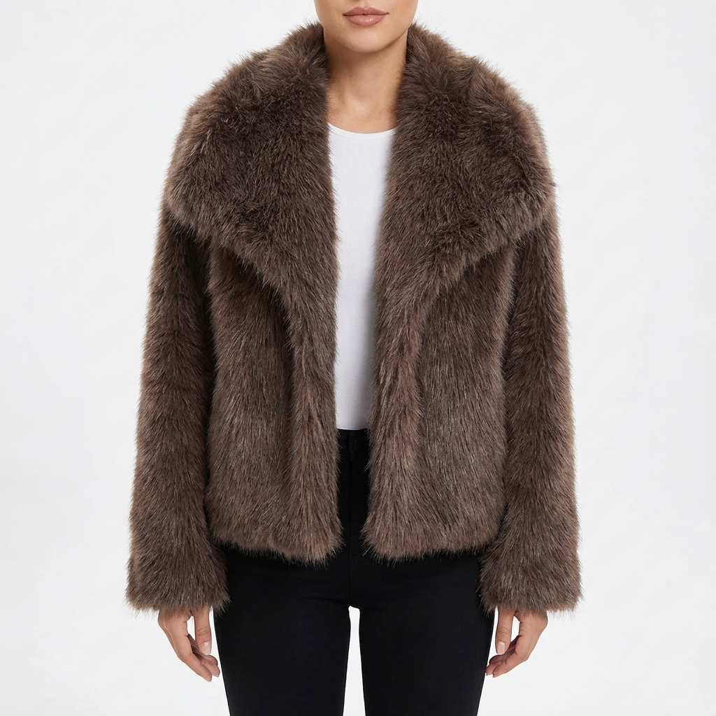 Disfruta de la comodidad y el estilo con nuestra chaqueta corta de piel sintética, diseñada para realzar cualquier atuendo. El estilo abierto crea un look moderno mientras que la suave piel sintética te envuelve en calidez para esos días fríos. El cuello ancho realza la elegancia, convirtiéndola en una pieza perfecta tanto para salidas informales como para eventos especiales. Su corte holgado permite combinarla fácilmente con otras prendas, lo que la convierte en una adición versátil a tu guardarropa.