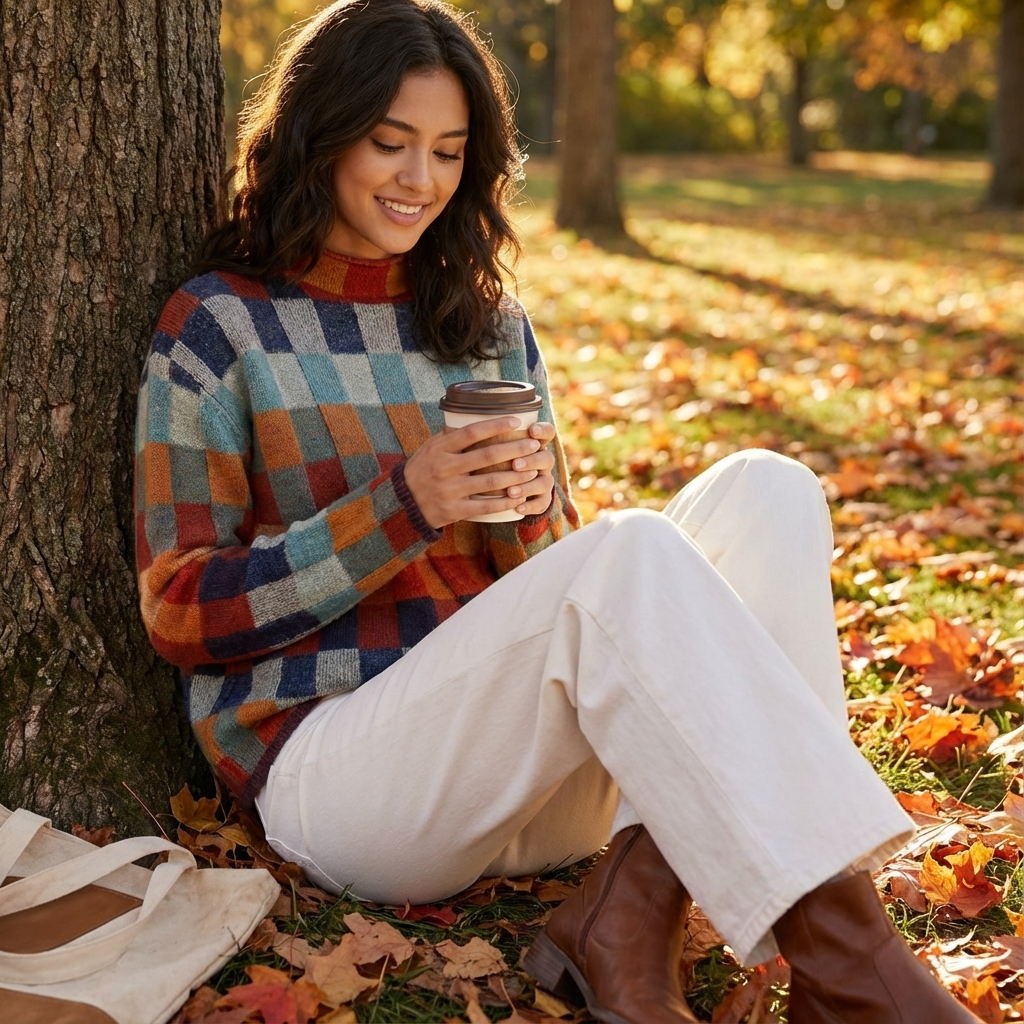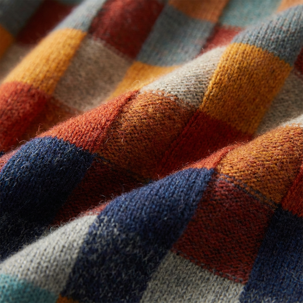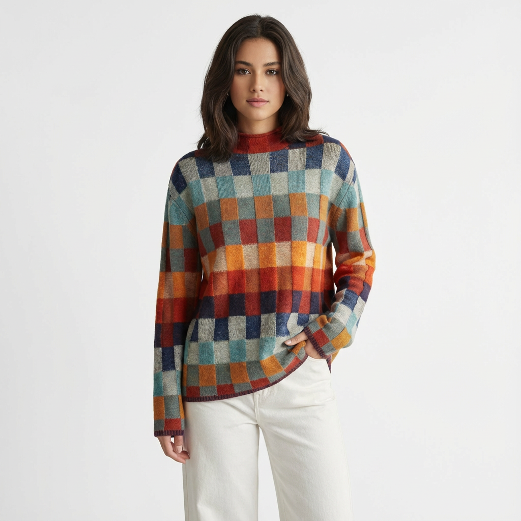 Realza tu guardarropa con este vibrante suéter de manga larga con bloques de color que combina calidez y estilo sin esfuerzo. El elegante diseño de cuello alto añade una capa extra de confort, haciéndolo perfecto para los días fríos. Con un elegante patrón cuadrado en una paleta multicolor, este suéter es una pieza destacada que realza cualquier atuendo.