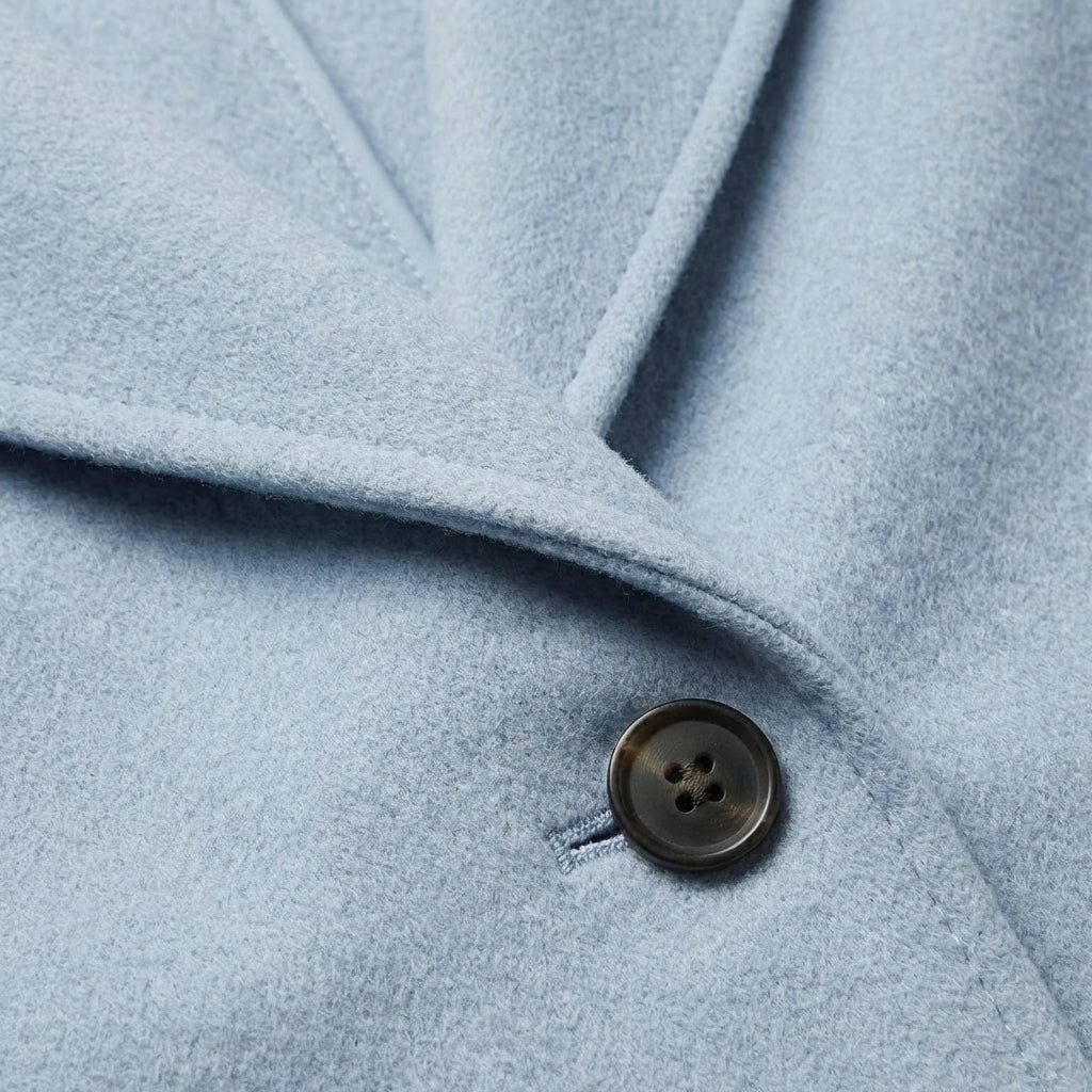 • Cierre De Botón Frontal: Un botón de acento permite cerrar el abrigo fácilmente, ofreciendo versatilidad para llevarlo abierto o cerrado según la ocasión.