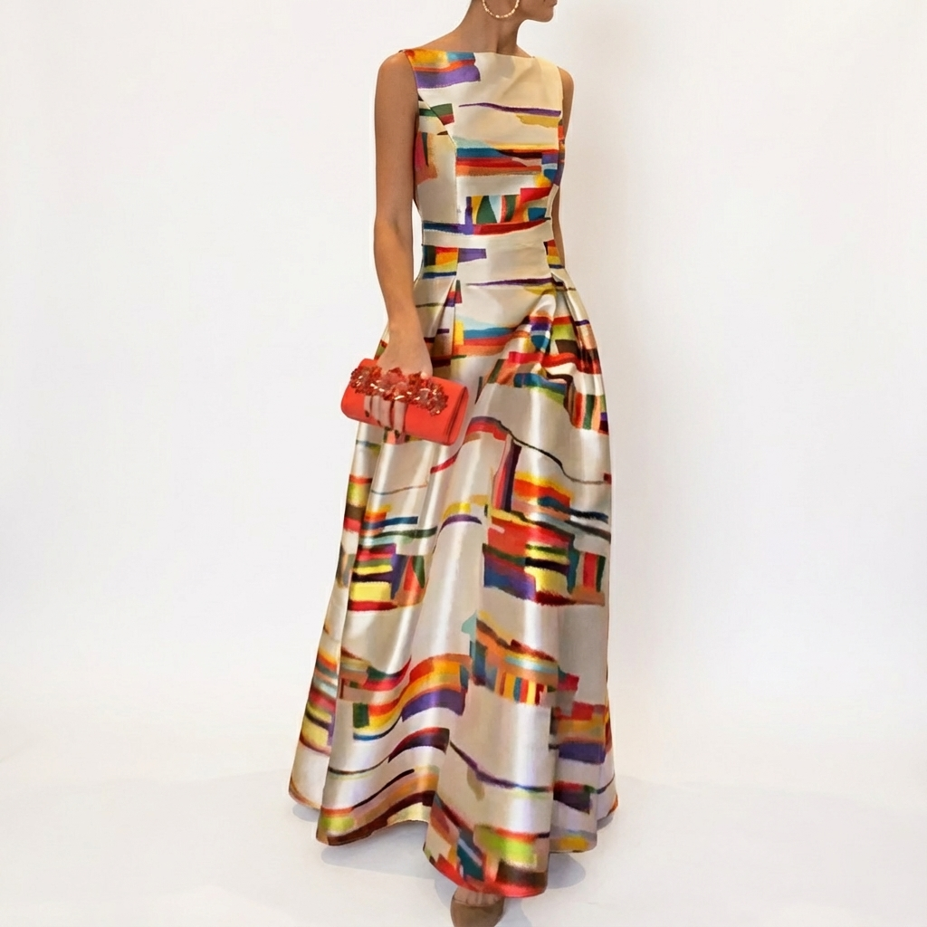 Maisie | Multicolor Vestido maxi acampanado sin mangas para mujer