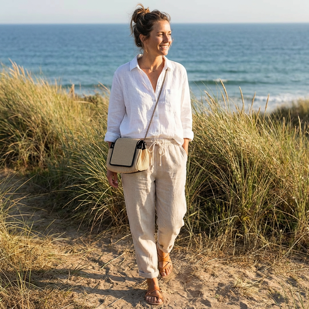 Sofia | Pantalón Mujer Con Cintura Con Cordón Y Bajo Doblado | Casual