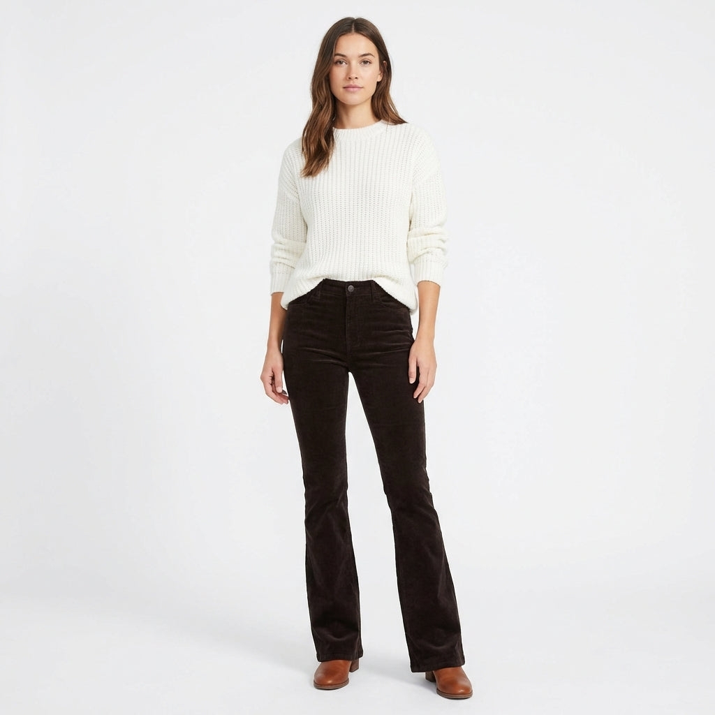 Valeria | Pantalón Mujer Con Pernera Acampanada Y Talle Alto | Retro