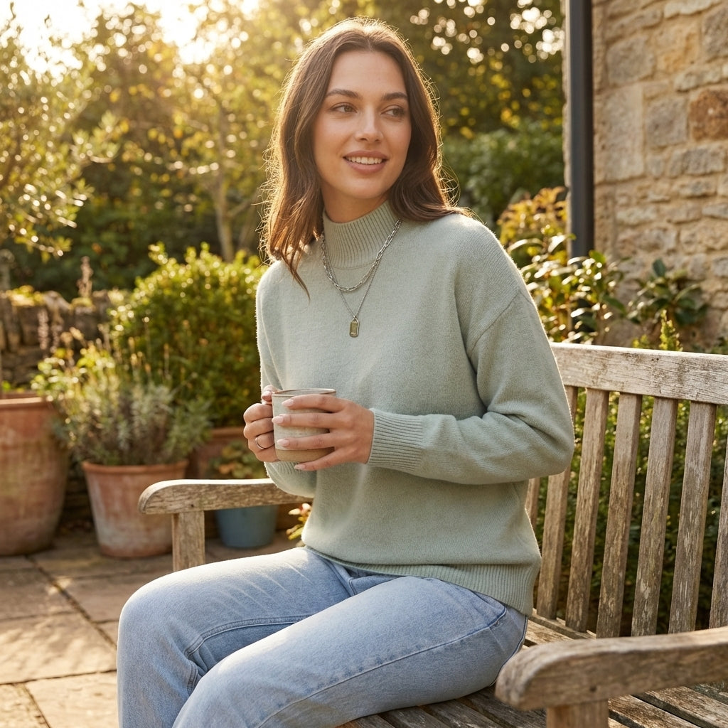 Envuélvete en suavidad con un jersey de cuello perkins que acaricia la piel con una ternura casi imposible, convirtiendo cada día frío en una excusa para disfrutar de la comodidad más elegante. Su punto fino y mullido ofrece calidez sin volumen, manteniendo una silueta limpia y estilizada que funciona tanto por dentro como por fuera del pantalón. El cuello medio protege del frío con discreción sin la rigidez de un cuello alto completo, enmarcando el rostro con una línea suave y favorecedora. Perfecto para la oficina, capas bajo abrigos, citas de invierno o cualquier momento donde quieras sentirte abrazada con estilo.