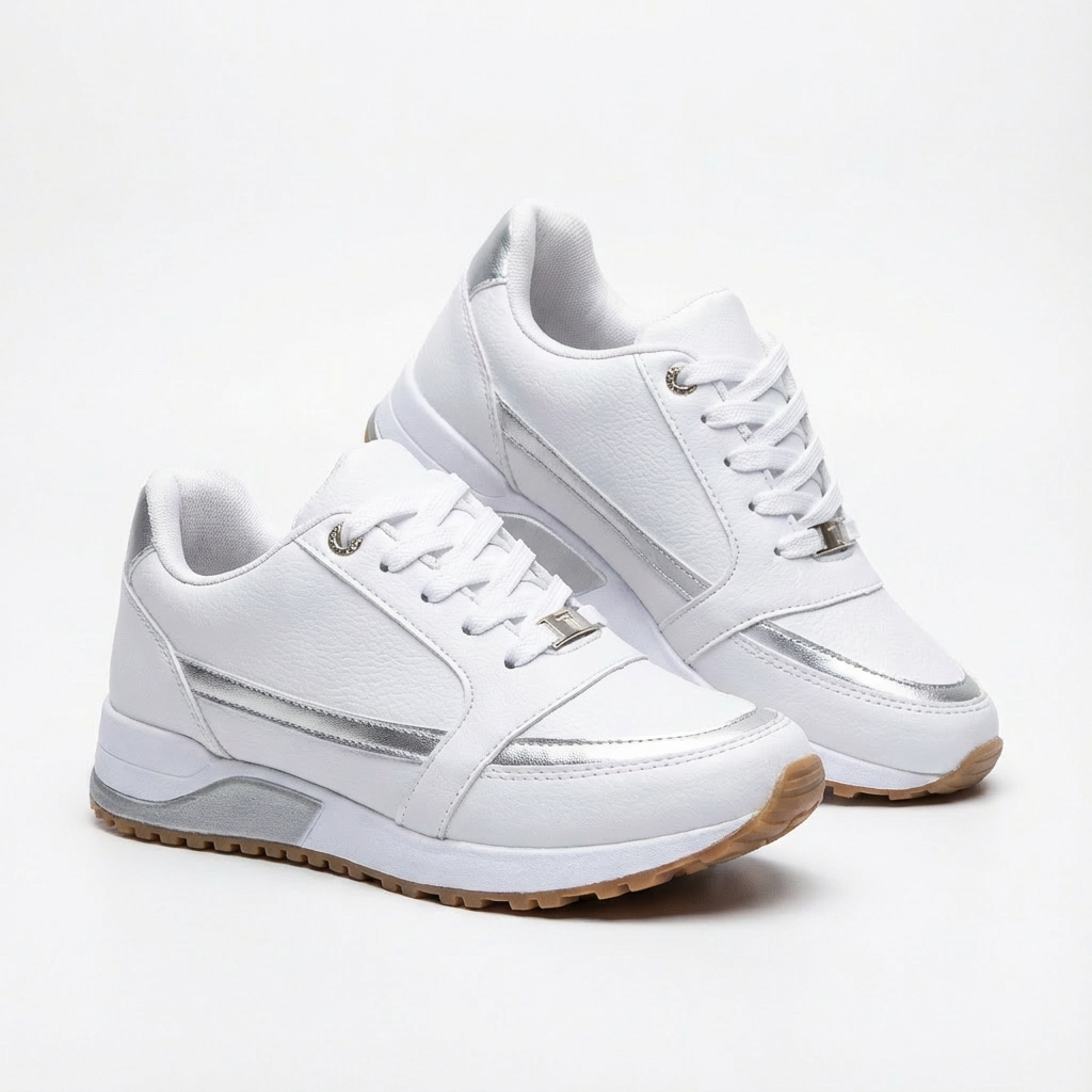 Gana altura sin sacrificar comodidad con estas ingeniosas zapatillas cuña que combinan estética deportiva y elevación discreta en un diseño irresistiblemente moderno. La suela elevada con cuña interior oculta proporciona centímetros extra que alargan visualmente tu silueta mientras mantienes la apariencia de unas zapatillas deportivas clásicas. El cierre de cordones garantiza ajuste personalizado y seguro adaptándose perfectamente a tu pie en cada actividad. El perfil aerodinámico crea una línea elegante y contemporánea, y la construcción ligera permite caminar cómodamente durante horas sin fatiga. El diseño bicolor añade interés visual sofisticado. Perfectas para paseos urbanos, días de shopping, salidas casuales, viajes o cualquier ocasión donde desees lucir más alta con estilo deportivo.