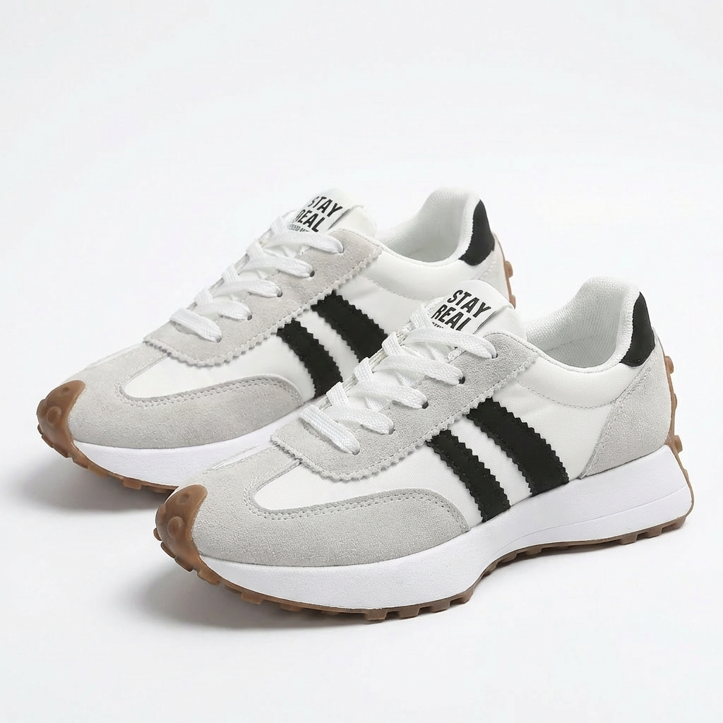 Camina con estilo y confianza con unas zapatillas que fusionan diseño retro y comodidad moderna en cada paso. Sus icónicas franjas laterales añaden un toque deportivo clásico que nunca pasa de moda, mientras que la suela plataforma te da ese impulso extra de altura sin sacrificar comodidad. El cierre con cordones garantiza un ajuste seguro y personalizado durante todo el día. Perfectas para looks urbanos, paseos por la ciudad o días activos donde quieras combinar estilo streetwear y funcionalidad.