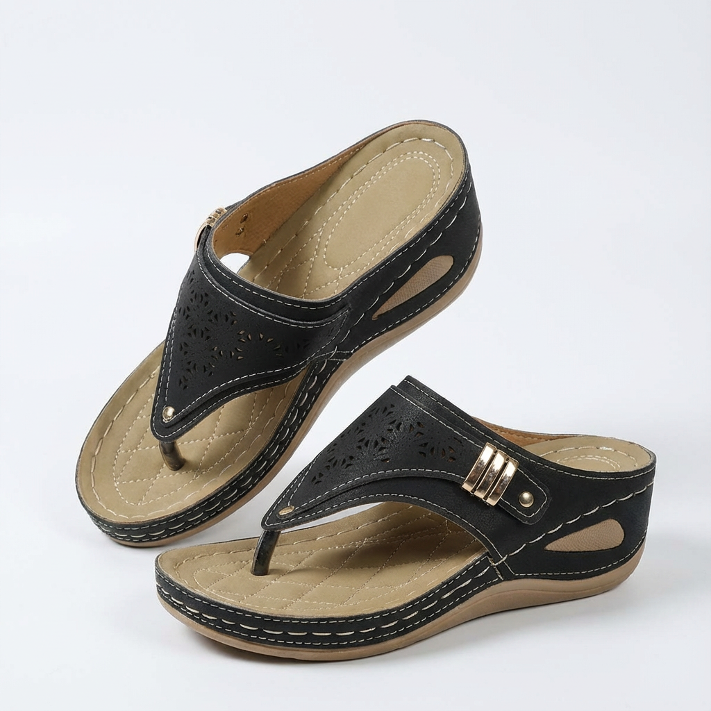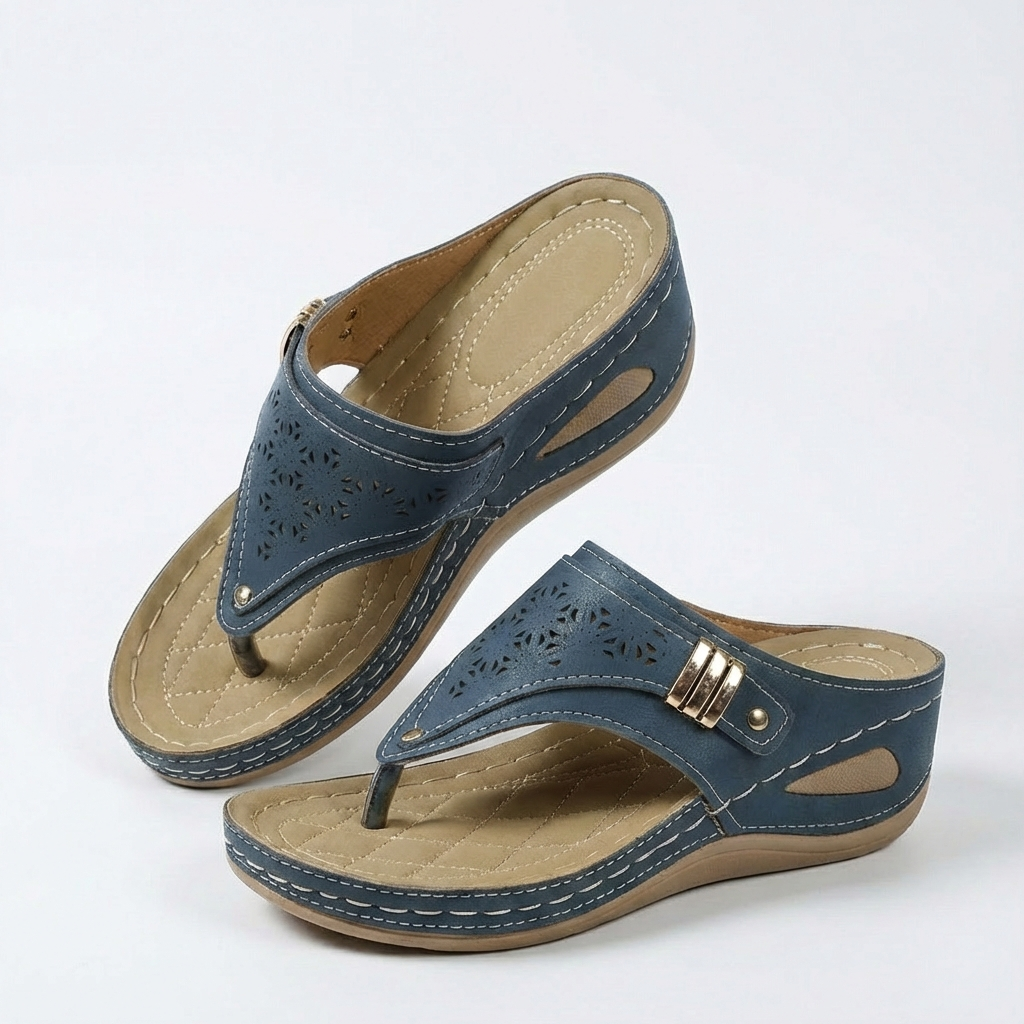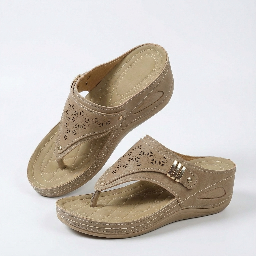 Valeria | Mujer Sandalias Cuña Con Diseño Perforado Y Tira Entre Dedos | Confort