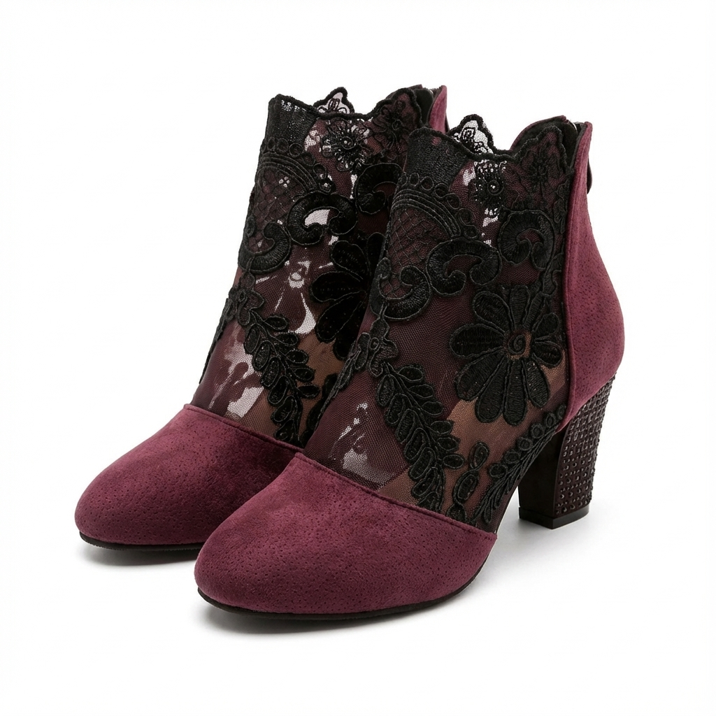 Candice | Stivaletti da Donna con Tacco Largo e Pizzo
