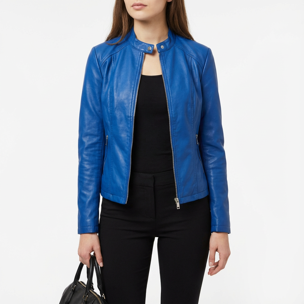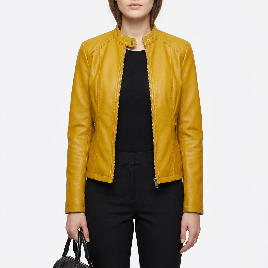 • Stile senza Collo: Lo scollo unico offre una svolta fresca alla classica giacca biker, rendendola versatile da abbinare a diversi outfit.