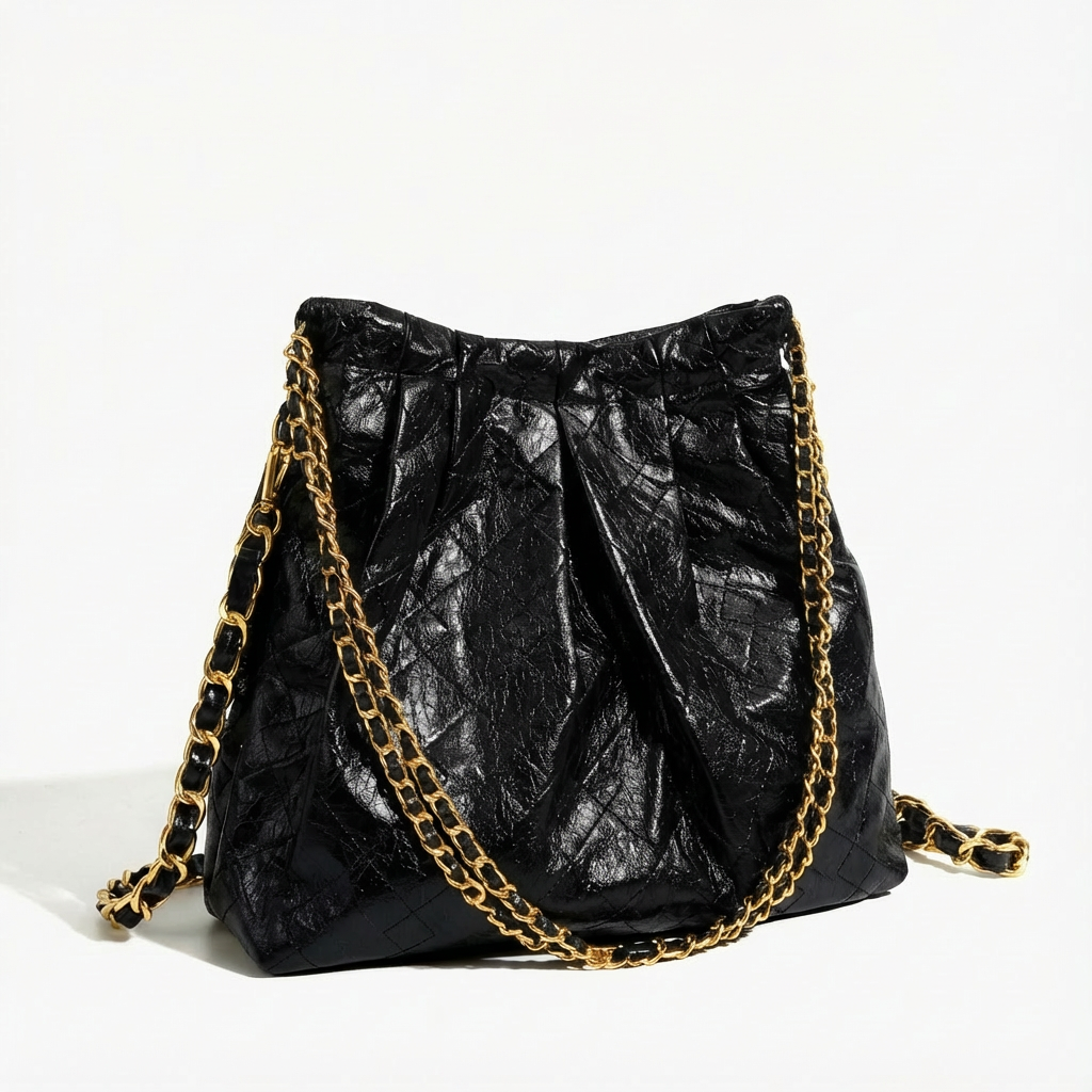 Lucia | Borsa Nera Tracolla Donna Con Imbottitura a Rombo e Catena Dorata | Affascinante