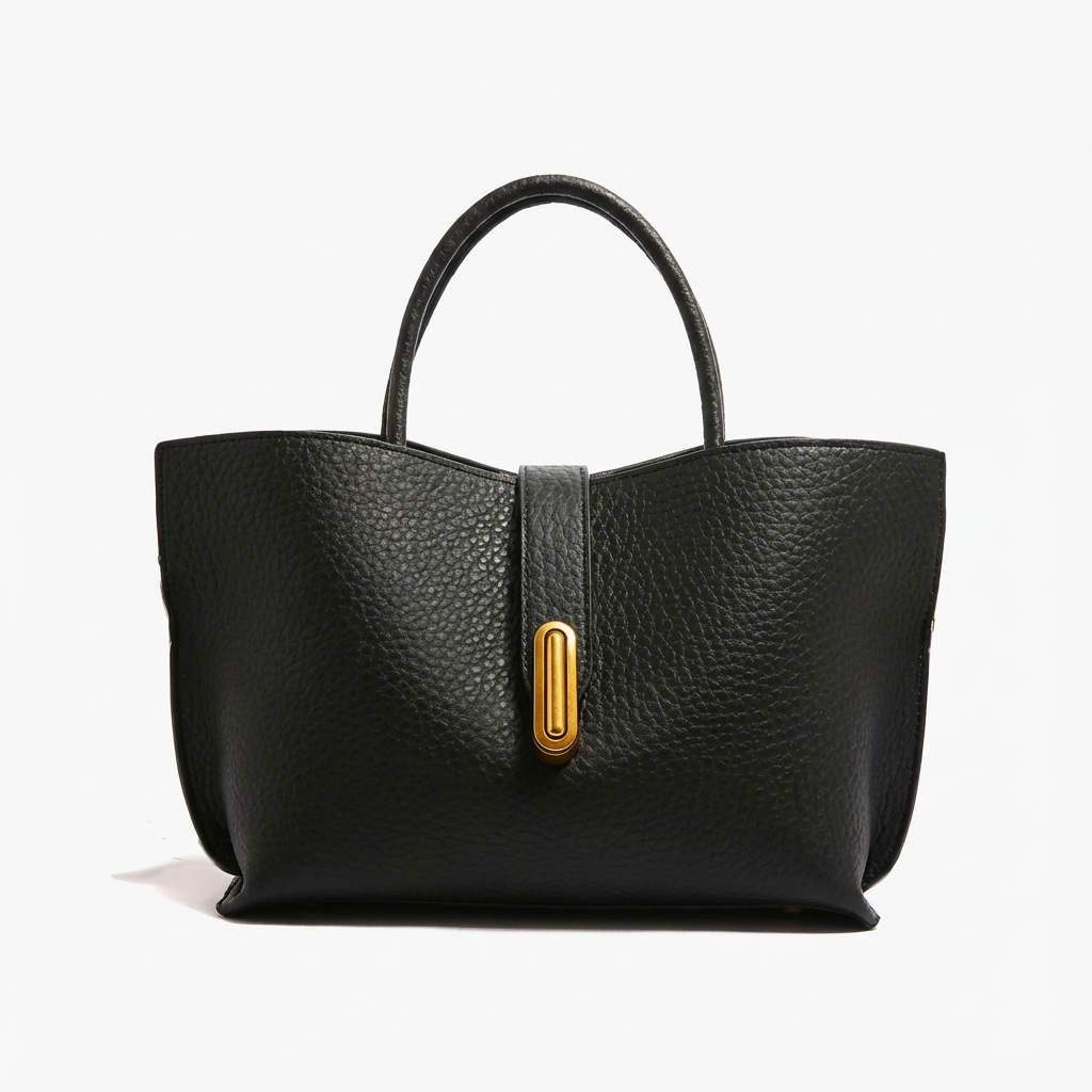 Luna | Borsa Nera a Mano Mini Donna con Chiusura Ovale Dorata e Sagoma Alata | Elegante
