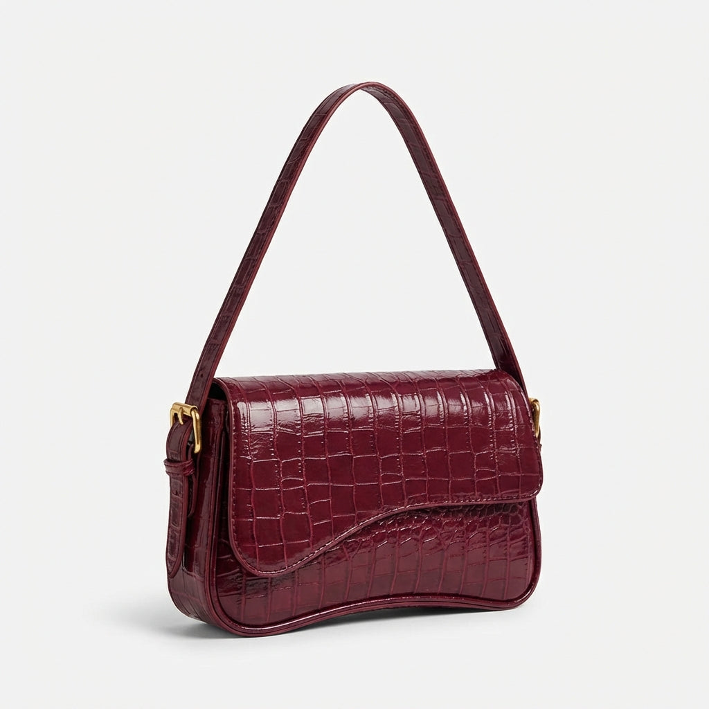Sofia | Borsa Baguette Donna con Effetto Coccodrillo e Colore Bordeaux | Sofisticata
