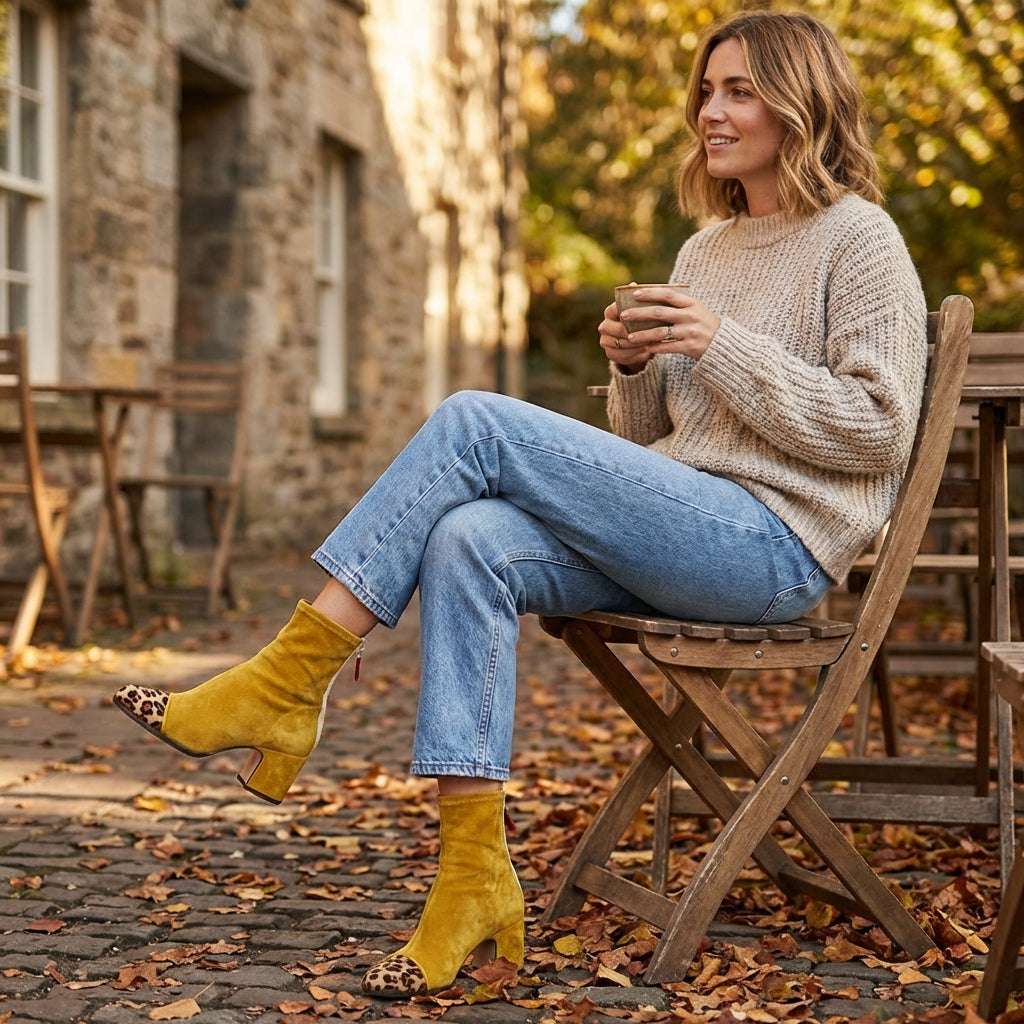 Osati rompere le regole con degli stivaletti che combinano colori vivaci, stampa animalier e dettagli sportivi in un design unico pieno di personalità. La punta leopardata aggiunge un tocco selvaggio e inaspettato che contrasta con il corpo principale, creando un effetto visivo audace che non passa inosservato. Il tacco largo offre stabilità totale e comfort per camminare con sicurezza per ore, mentre la cerniera posteriore con bordo a contrasto facilita una calzata rapida e comoda. Perfetti per eventi creativi, uscite serali, look da weekend o qualsiasi occasione in cui vuoi esprimere il tuo lato più audace.