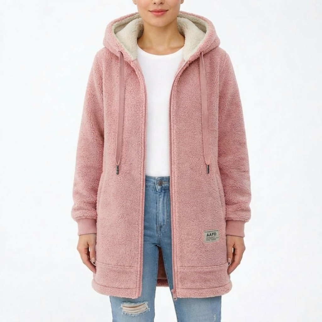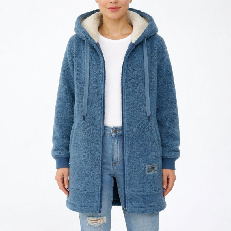 Lisa | Giacca lunga da donna con fodera sherpa e cerniera
