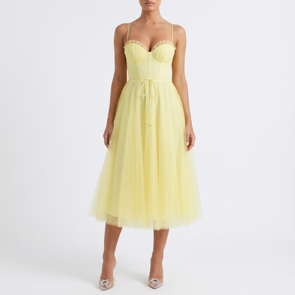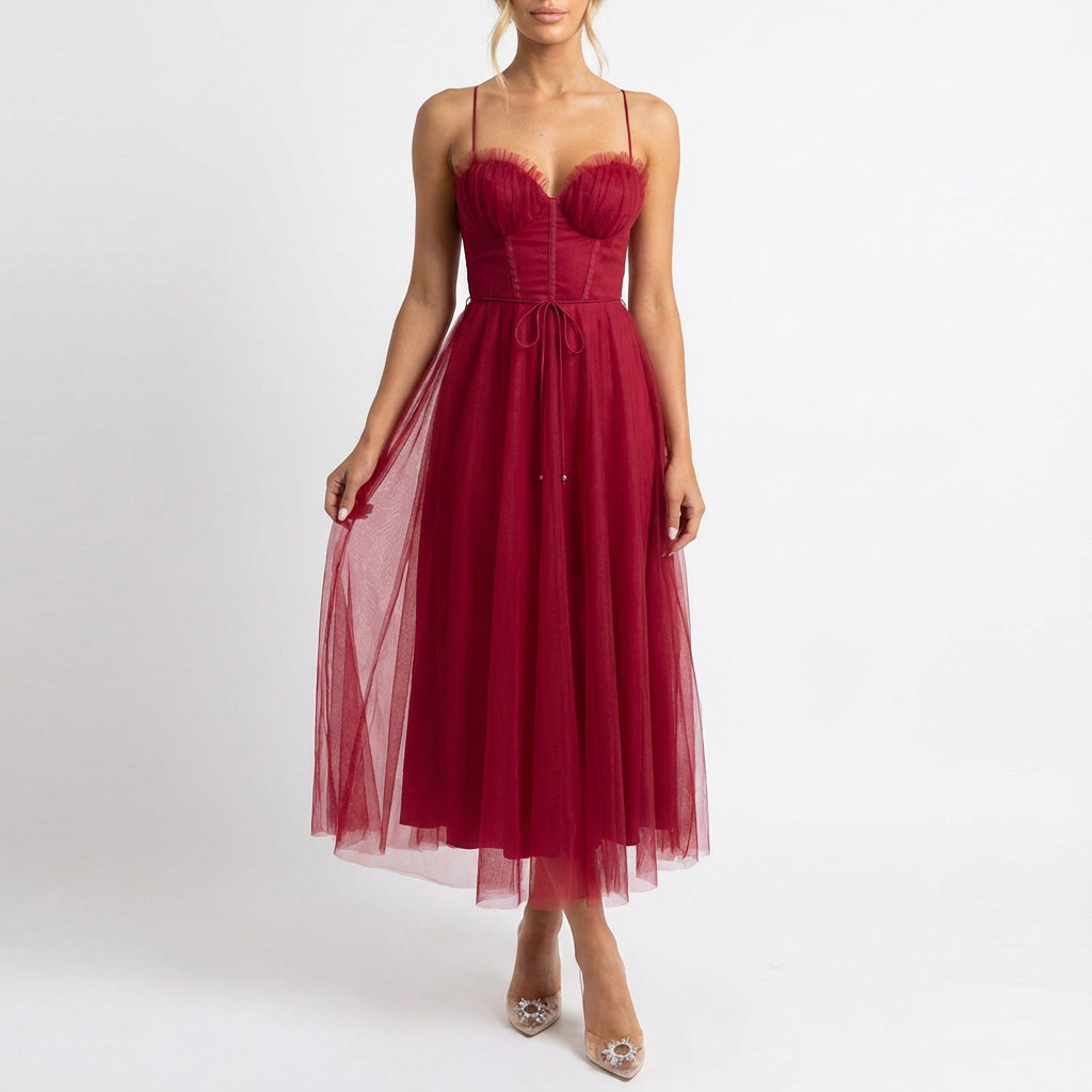 Esalta il tuo stile questa stagione con il nostro straordinario Vestito Midi, che presenta una silhouette a linea A lusinghiera e delicati spallini sottili. Il corpetto aderente abbraccia la tua figura nei punti giusti, mentre la vita con coulisse definisce la tua forma senza sforzo. Questo vestito è ideale per ogni occasione, dagli appuntamenti serali alle feste estive, assicurandoti di apparire elegante e comoda.