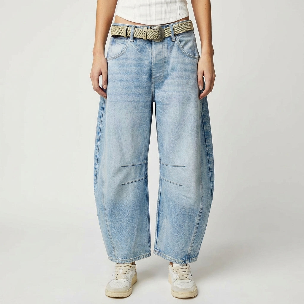 Osare distinguersi con un paio di jeans che ridefiniscono lo stile contemporaneo. La loro innovativa gamba curva crea una silhouette unica e valorizzante che ti distingue dal convenzionale, mentre le cuciture decorative aggiungono un dettaglio architettonico che eleva qualsiasi look semplice. Il taglio ampio e strutturato ti offre comodità senza sacrificare la personalità. Perfetti per uscite in città, eventi creativi o qualsiasi occasione in cui desideri mostrare uno stile all’avanguardia e pieno di carattere.