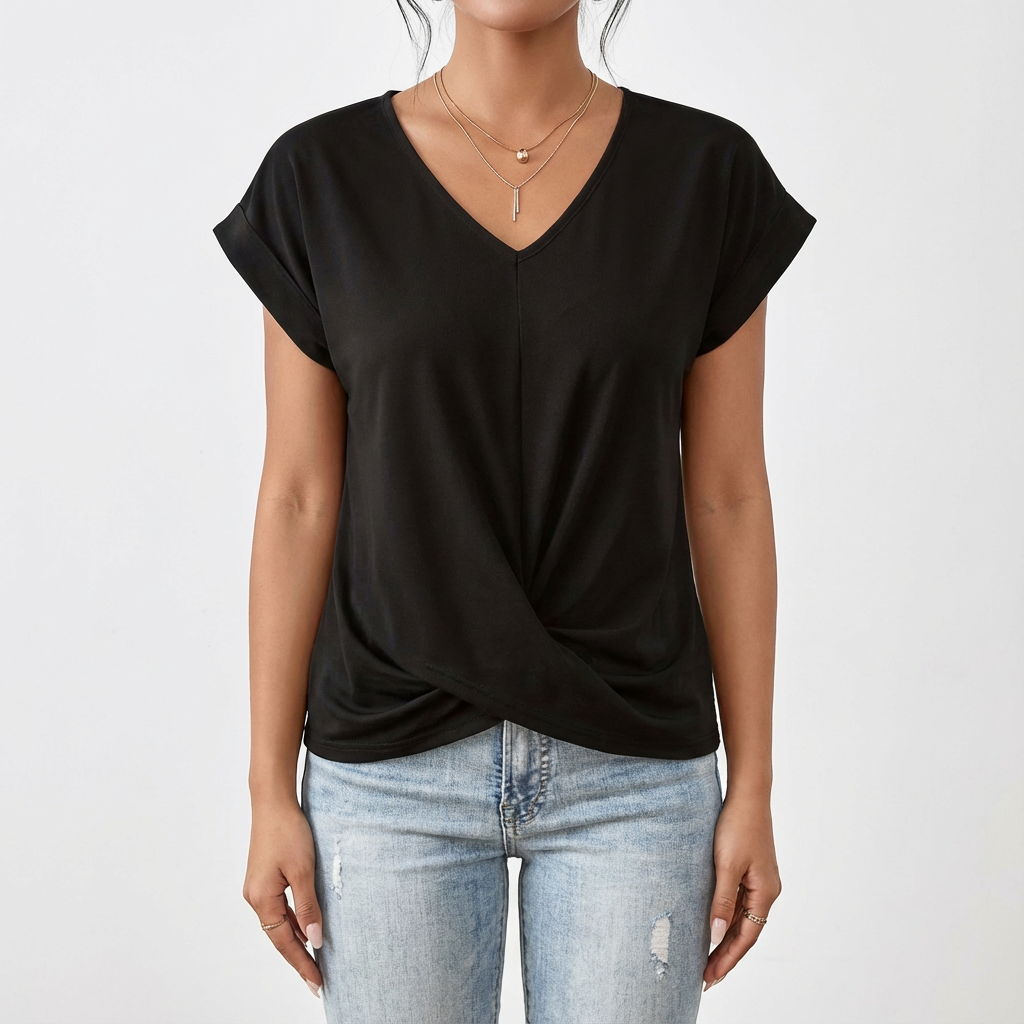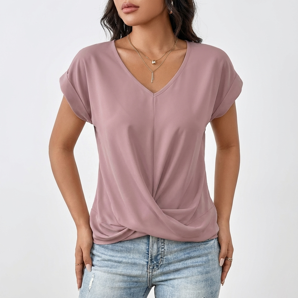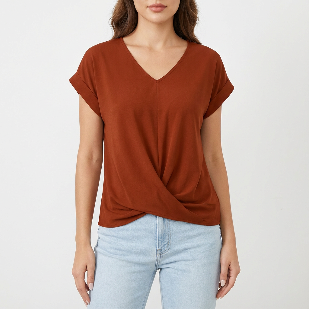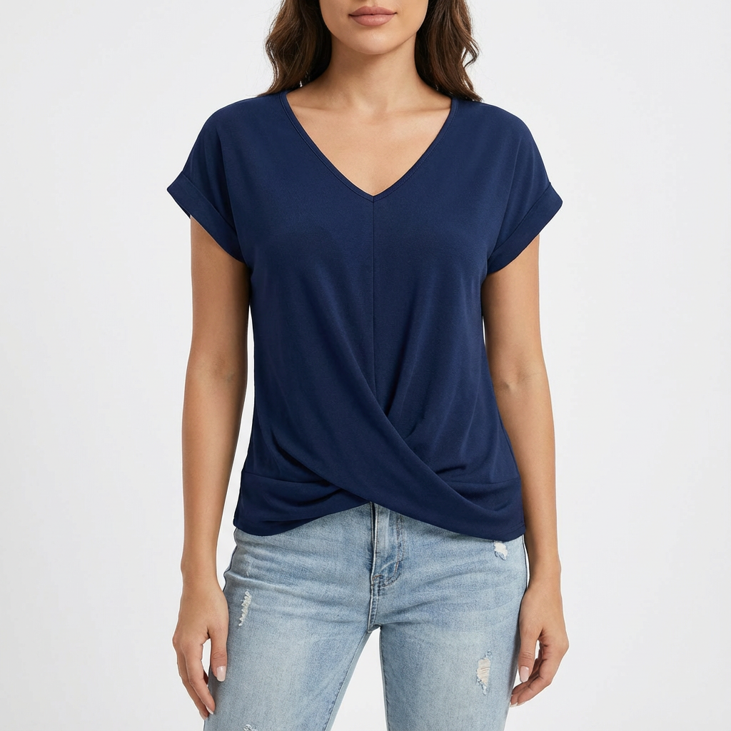 Daniela | Maglietta da Donna con Scollo a V e Dettaglio Annodato Frontale