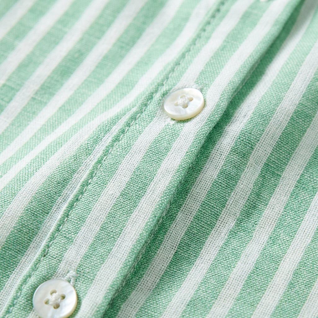 • Colletto camicia con bottoni: Apertura frontale completa che offre versatilità per regolare la scollatura, combinando l’eleganza di una camicia classica con la freschezza di un vestito.
