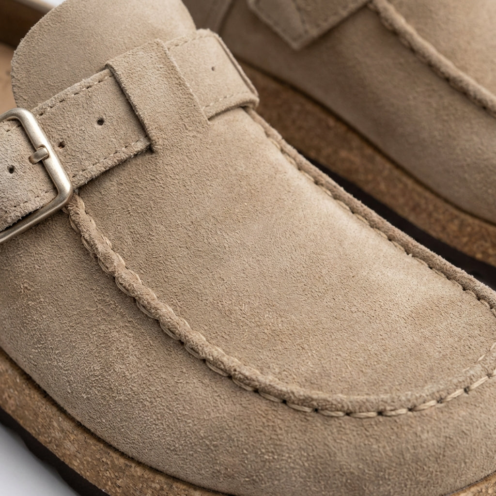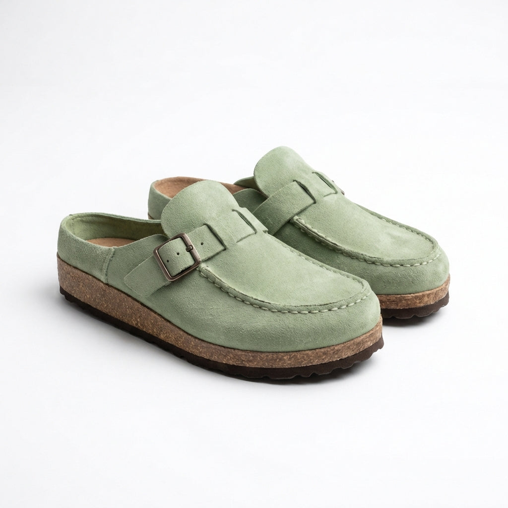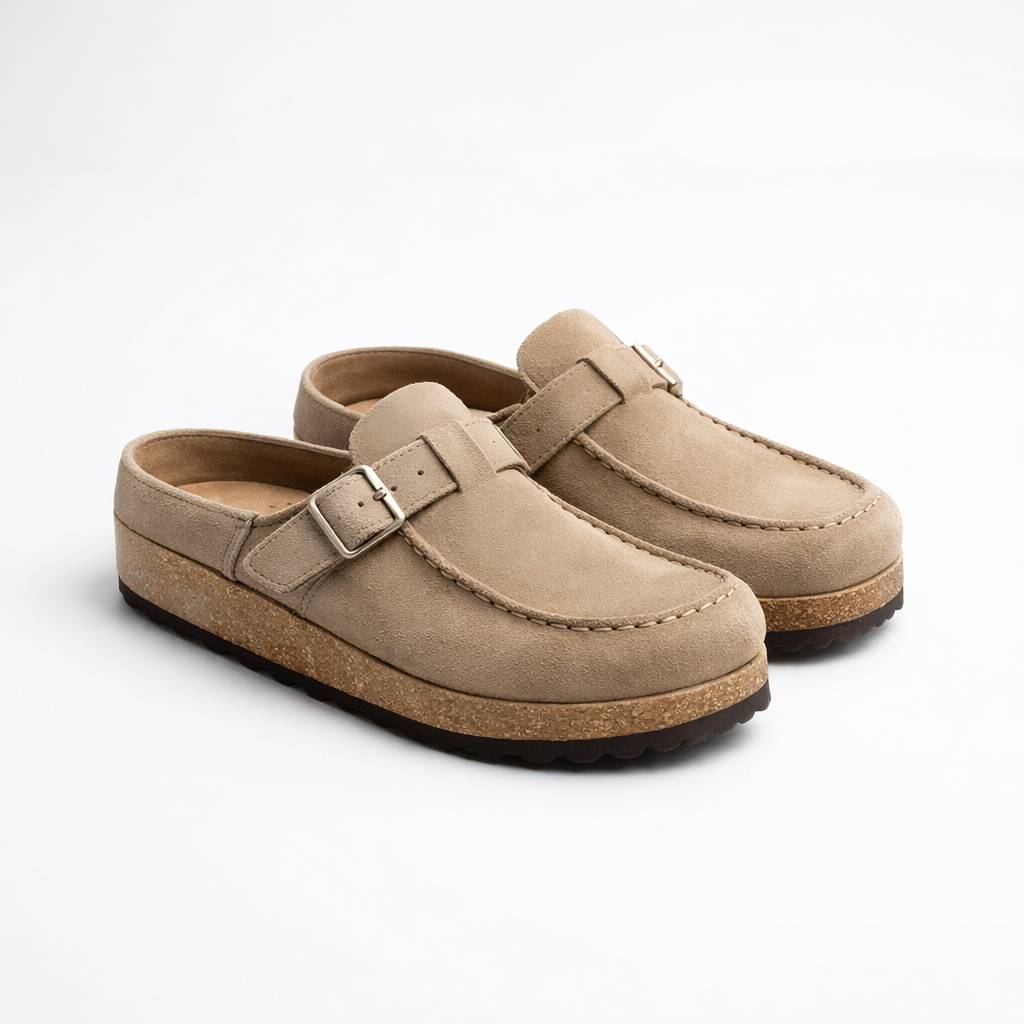 Abbraccia il fascino d’epoca con un paio di zoccoli che uniscono stile retrò e comodità moderna a ogni passo. La loro fibbia decorativa aggiunge un tocco classico che richiama la moda di decenni passati, mentre le cuciture a vista conferiscono una finitura artigianale che testimonia la qualità. Il design aperto sul tallone permette di indossarli in pochi secondi con uno stile disinvolto. La suola robusta offre stabilità e comfort per tutto il giorno. Perfetti per look bohémien, passeggiate in città o giornate rilassate in cui vuoi mostrare una personalità unica.