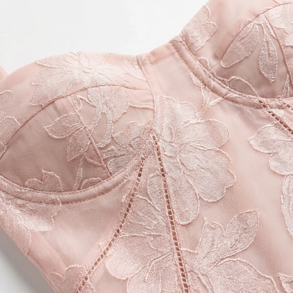 - Spalline Sottili e Delicate: Le bretelle sottili slanciano visivamente spalle e collo con eleganza, incorniciano la clavicola con grazia femminile e aggiungono un tocco sottile che bilancia perfettamente il disegno elaborato del ricamo floreale con una sofisticazione minimalista senza tempo.