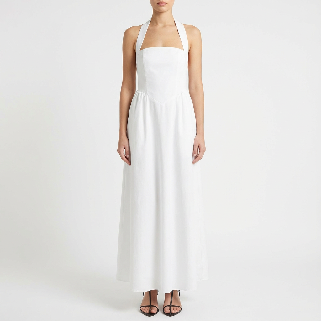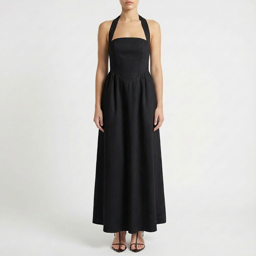 Fluisci con infinita grazia indossando questo sofisticato vestito maxi che combina eleganza senza tempo con funzionalità pratica in un design assolutamente indispensabile. Lo scollo halter lusinghiero incornicia le tue spalle e la schiena con sofisticata sensualità mentre allunga visivamente la tua silhouette con proporzioni eleganti. Le tasche laterali nascoste offrono comfort funzionale senza compromettere la linea slanciata del vestito permettendoti di conservare gli essenziali con discrezione. La caduta fluida fino a terra crea quel movimento etereo che trasforma ogni passo in una passerella personale. La silhouette allungante valorizza ogni figura con eleganza senza sforzo. Perfetto per matrimoni in spiaggia, cene eleganti, eventi estivi, vacanze speciali o qualsiasi occasione in cui desideri apparire sofisticata con assoluto comfort.