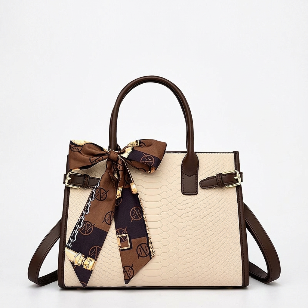 Scopri la combinazione perfetta di sofisticazione e funzionalità con la nostra borsa tote strutturata dal design unico. Con un manico superiore e un elegante dettaglio con sciarpa, questa borsa si distingue come un'aggiunta squisita a qualsiasi guardaroba. Che tu stia andando al lavoro o uscendo per un brunch nel weekend, è la compagna ideale per tutte le occasioni.