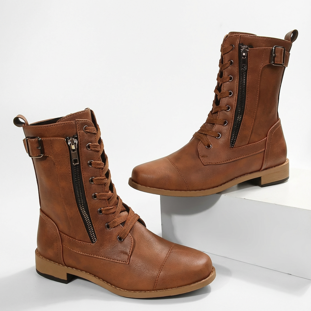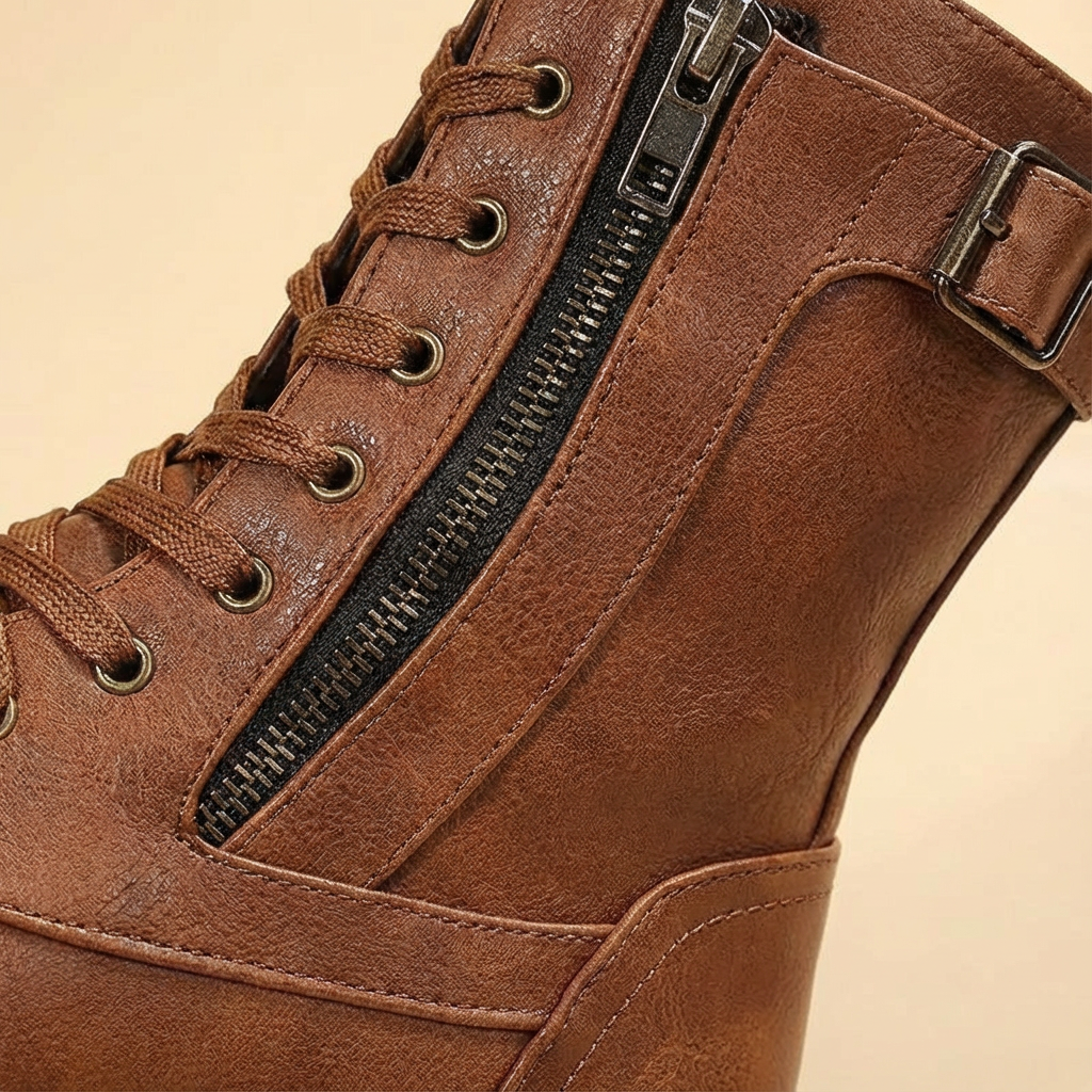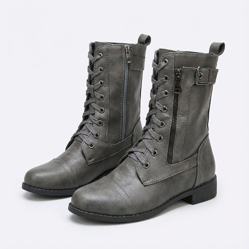 Questi Stivaletti con Lacci combinano un design classico con il comfort moderno, rendendoli un'aggiunta notevole al tuo guardaroba. La cerniera laterale permette un utilizzo senza sforzo, mentre la suola dentata offre una trazione e una durata superiori, perfette per ogni avventura. Progettati per essere eleganti e pratici, questi stivaletti assicurano che i tuoi piedi siano felici e sicuri ad ogni passo.