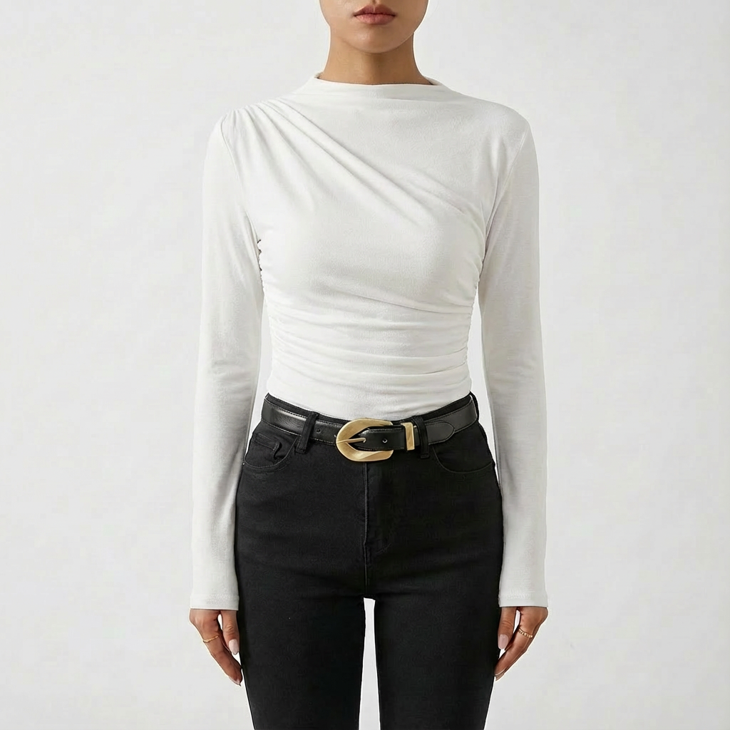Sofia | Maglia Drappeggiata Donna con Pieghe Asimmetriche e Spalle Marcate | Elegante